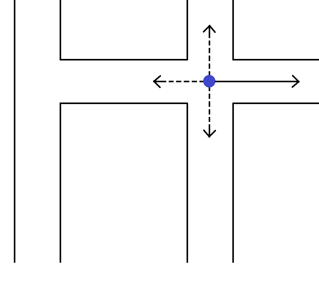 矢印(実線)の方向に進むとします.